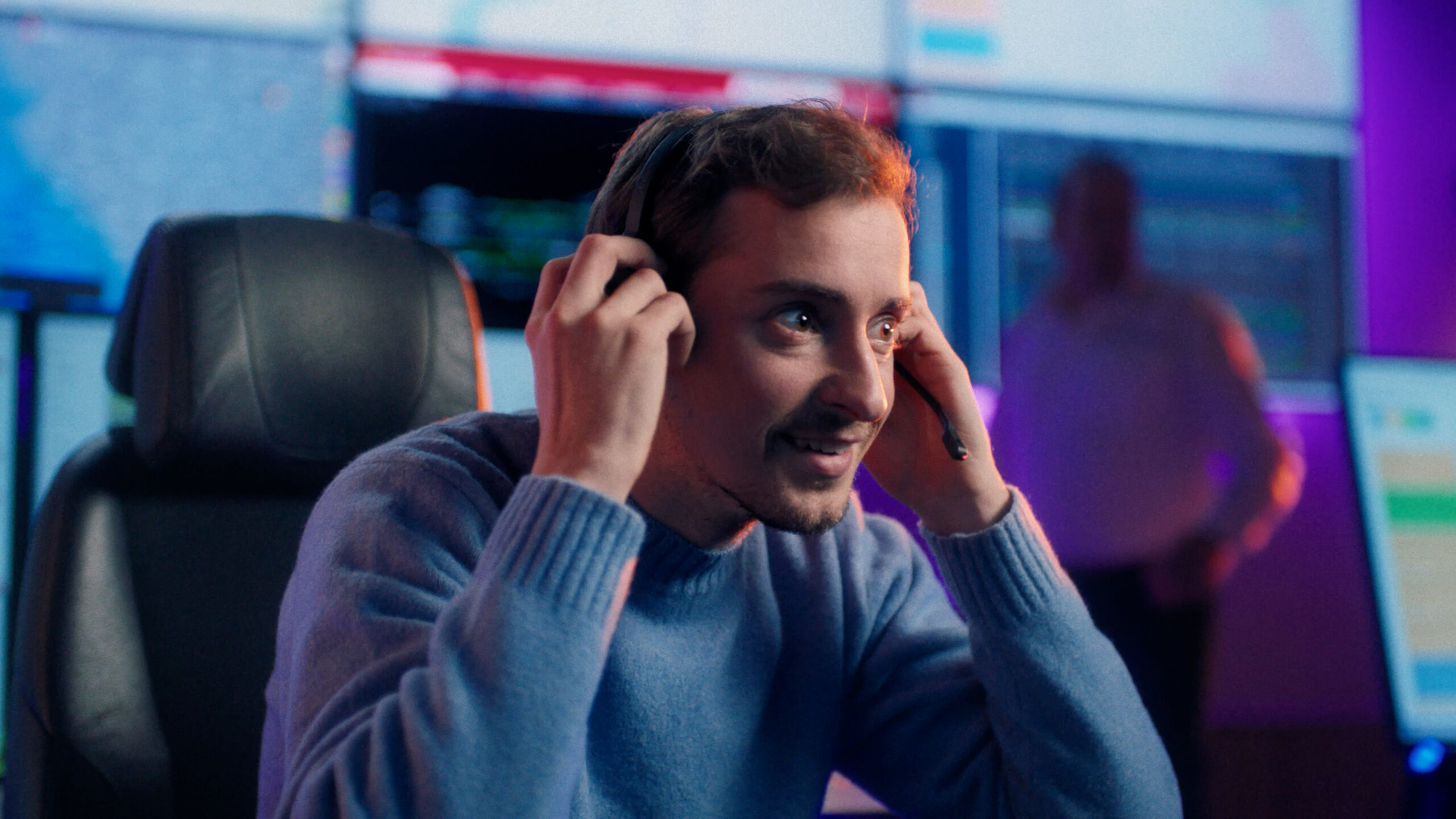 In 1 van de video’s is te zien dat de hoofdrolspeler, wanneer hij zijn koptelefoon op zet, opeens in een meldkamer zit en meemaakt hoe spannend het is om daar te werken.