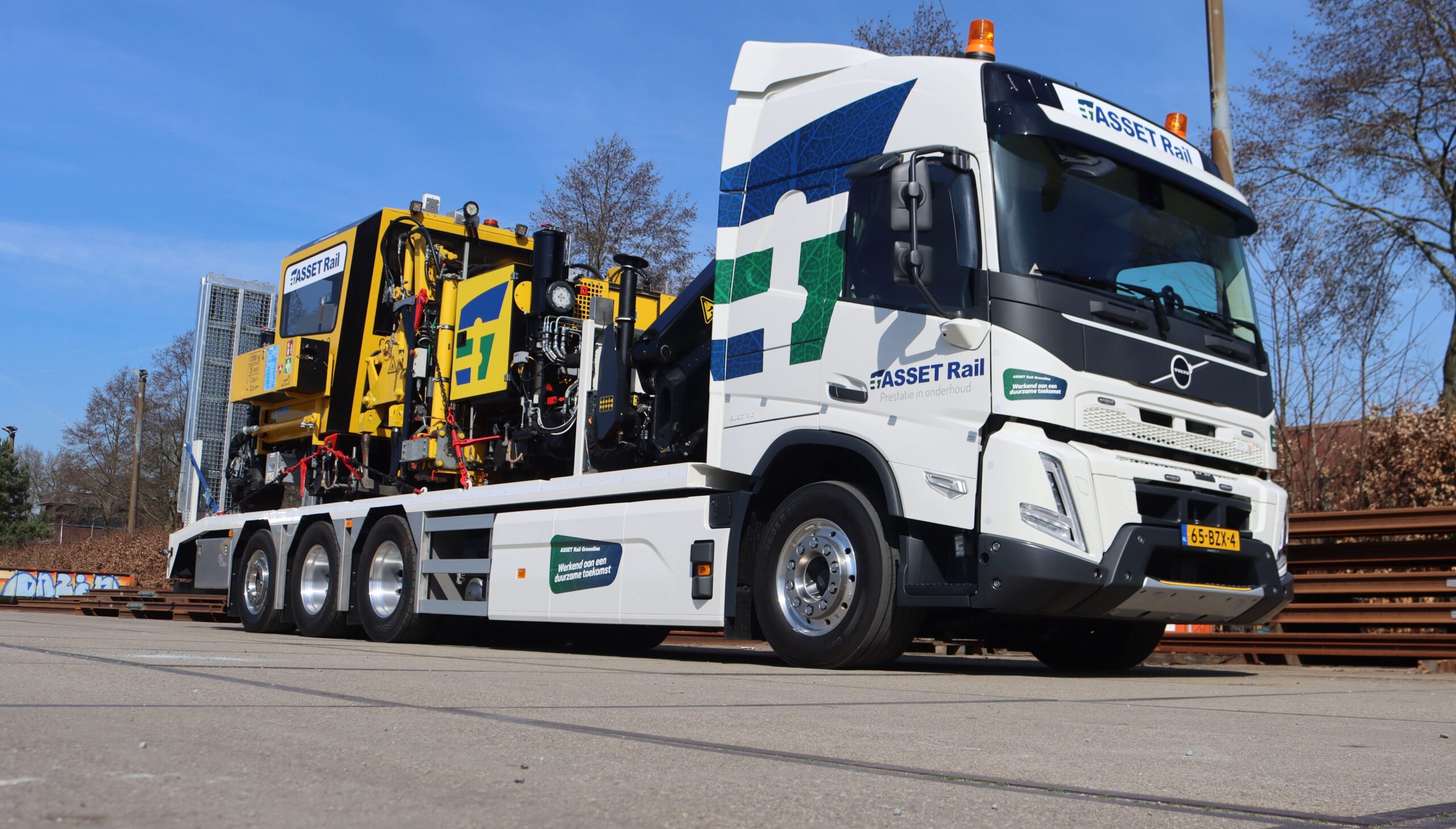 De Volvo VMX-E is een speciaal ontwikkeld elektrisch bouwvoertuig dat binnen ASSET Rail wordt ingezet voor het transport van de Romitamp en ander zwaar materieel door heel Nederland. Bij de aanschaf is bewust gekozen voor een duurzaam alternatief, waarmee we bijdragen aan milieuvriendelijk werken in de spoorsector.