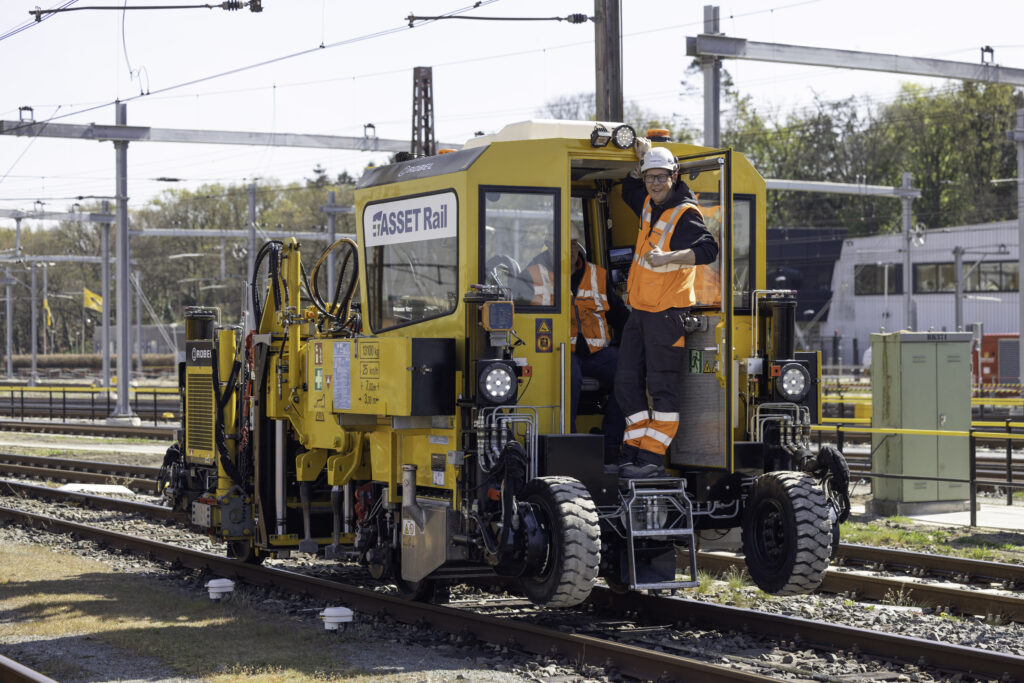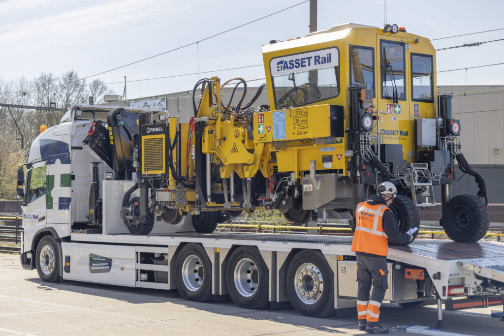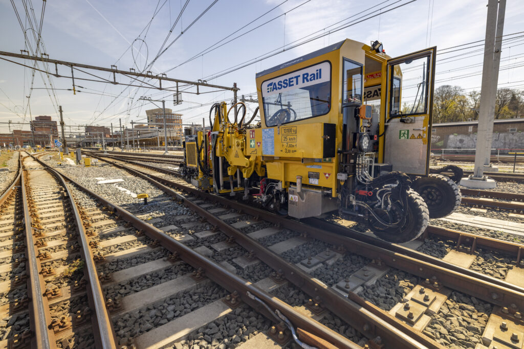 Wat deze machine bijzonder maakt, is dat hij zowel op het spoor als op de weg kan rijden – een eigenschap die hem uitzonderlijk flexibel inzetbaar maakt. ASSET Rail is de enige partij binnen de Nederlandse spoorbranche die beschikt over een Romitamp met deze unieke ‘rail-road’ capaciteit.